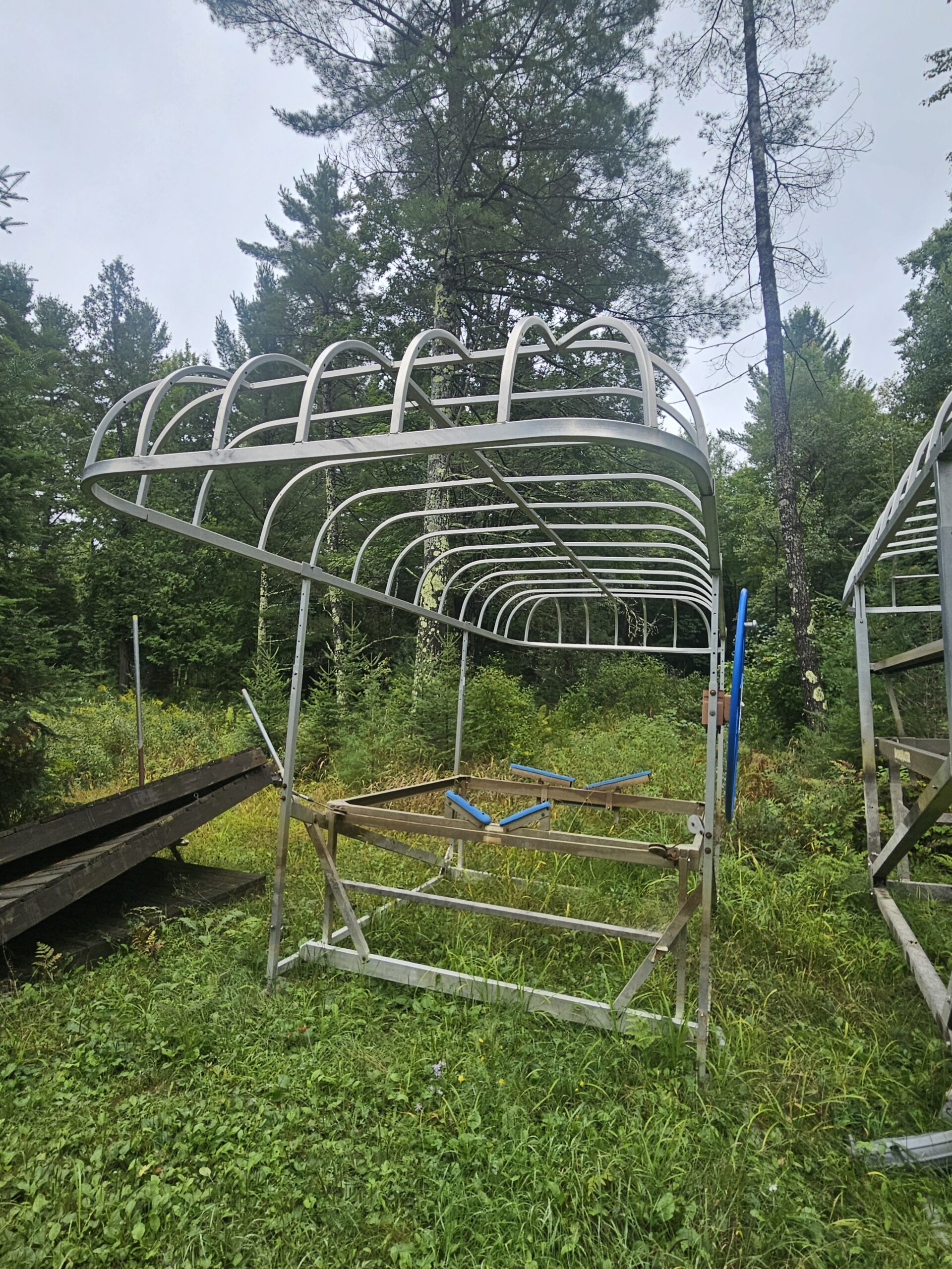 Manual crank. Puck style bunks. Could hold larger . Has new Canvas